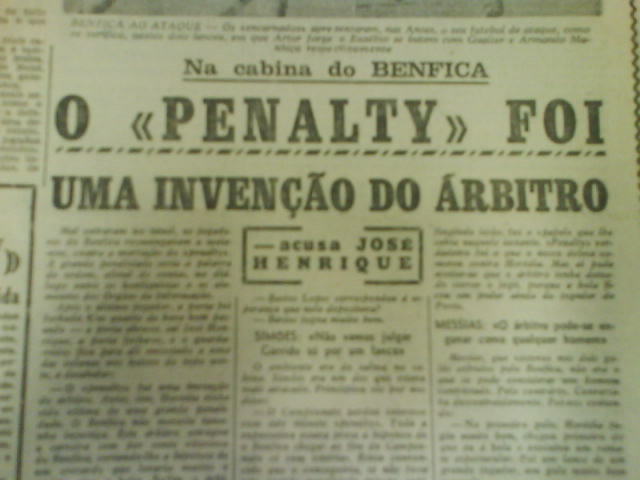 | Apesar de se ver mal (prometo uma digitalização melhorada em breve), as declarações de Eusébio, reproduzidas no interior de "A Bola" não deixam dúvidas: "A hesitação de Garrido foi sinal de fraqueza" |