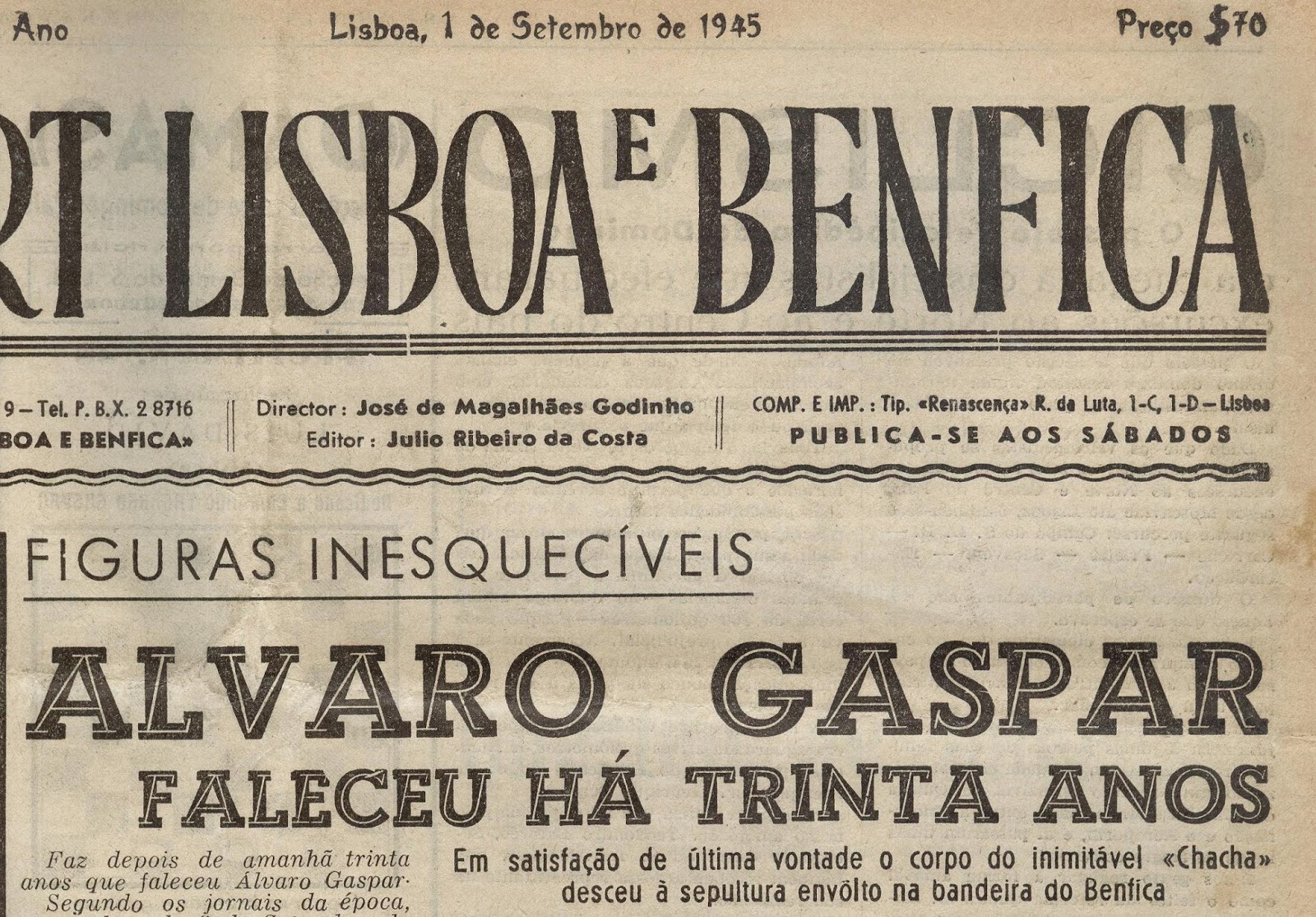 O Clube através do seu Semanário continuou a honrar a sua memória