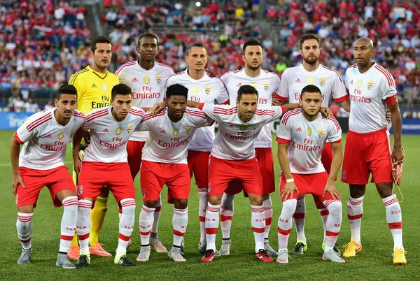| Gloriosa n.º 5088. De cima para baixo. Da esquerda para a direita. Júlio César, Talisca, Fejsa, Samaris, Jardel (segundo capitão) e Luisão (capitão); André Almeida, Gaitán, Eliseu, Jonas e Jonathan |