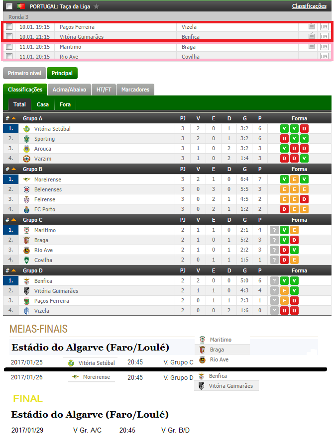 E para vencer há que marcar mais golos que o adversário. Hoje se o Benfica vencer ou empatar terá como adversário nas meias-finais o Moreirense FC. Vamos a eles.Primeiro em Guimarães. Sem um bom jogo frente ao Vitória SC não haverá Algarve!