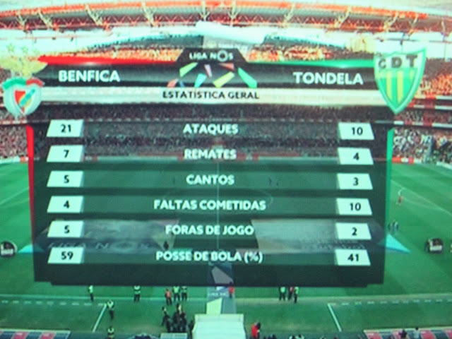 A segunda parte foi À Benfica! Arrasadora. De sete para 21 remates (mas 14 - o dobro). De 59 para 71 por cento de posse de bola.