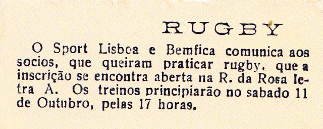 Benfica foi um dos clubes pioneiros na divulgação do râguebi no nosso país,