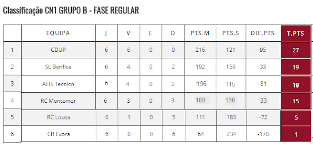 Apaixonante final de fase regular, de veras!! Uma pena este regresso à elite não seja plenamente valorizado pelo clube -dada a cobertura aleatória das modalidades na BTV, nunca acreditei que iria haver uma transmissão televisiva desde o Jamor, mas enfim, sonhar não custa nada... Acredito na permanência na CN1! Carrega Benfica!