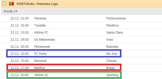 final da 1.ª volta vão defrontar-se o 3.º e o 4.º (14.ª jornada, já no próximo domingo)