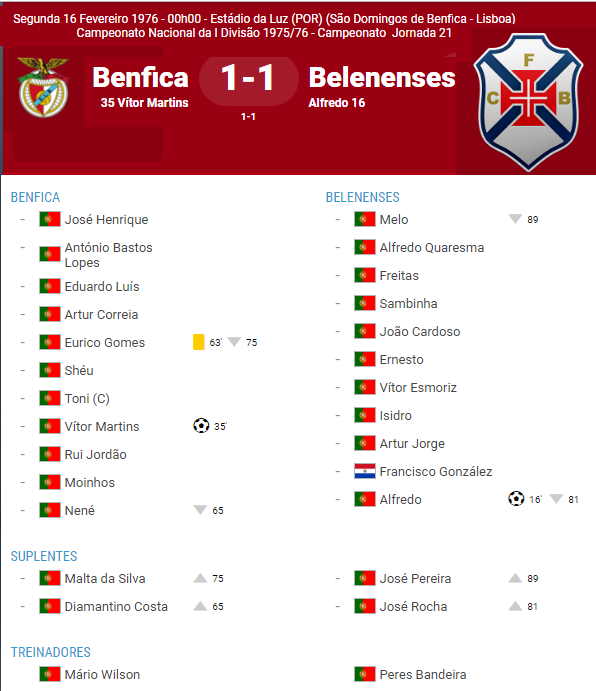 Sem tempo para fazer grandes pesquisas - estou mais interessado em fazer um texto acerca da conquista, hoje à tarde, do título de campeão nacional pelo plantel sénior de Hóquei em Patins - veja-se bem esta equipa que jogou, em 15 de Fevereiro de 1976, frente ao CF "Os Belenenses", na 21.ª jornada em temporada de revalidação do título de Campeão Nacional.