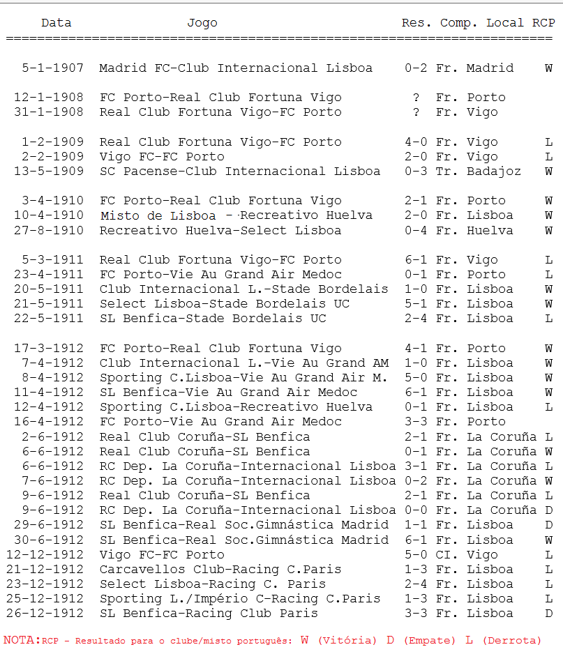 Internacional) e no último outro pelo conceituado e veterano Plácido Duro! Para ver os jogos internacionais até ao final de 1912 (clicar)
