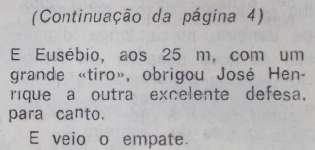não marcar. Só que Eusébio, por lesão, não jogou os 90 minutos, acabando