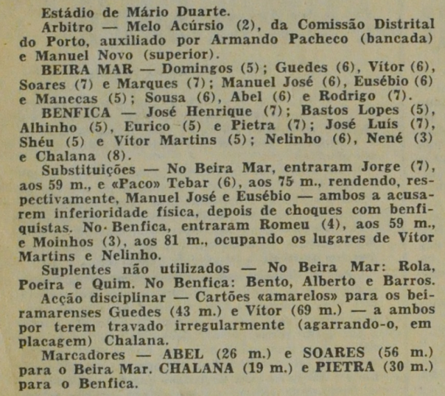 Até destas declarações infelizes de Eusébio, aproveitando-se do seu estado de saúde e, principalmente da idade, que os jornais do dia seguinte ao jogo desmentem completamente!