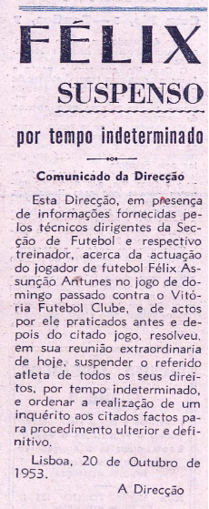 1953/54 a última época no Benfica. Tal como Félix Antunes. A diferença é que um foi