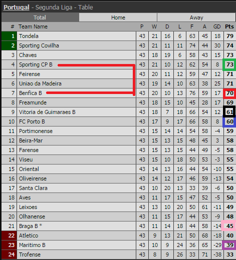 Jg B ESmFt; O 0-0; Sporting CP B; Segunda