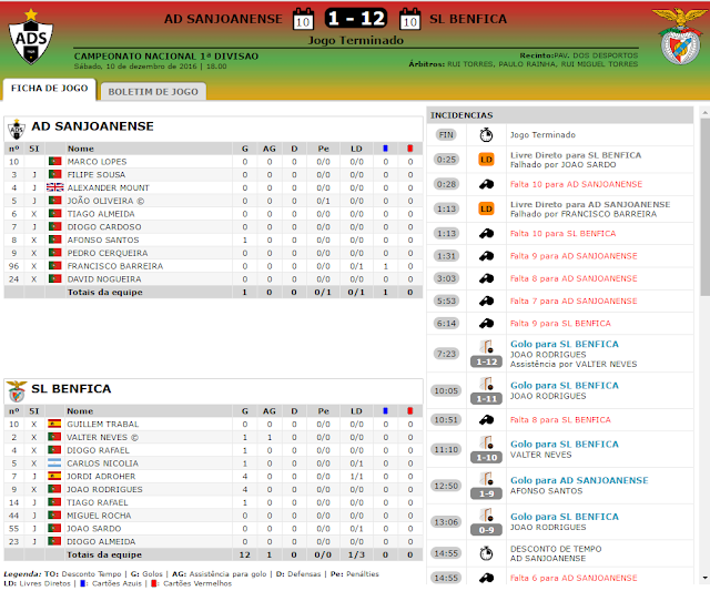 | Para a FPP este golo (7-1) foi de João Rodrigues que momentaneamenrte trocou o número com Jordi Adroher, talvez para dar sorte na marcação do «Livre Directo»! Só que trocou tudo! Se não conseguem distinguir um 7 de um 9 como podem fazer fichas de jogos!? |