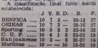 NOTAS : Época em que o Benfica se sagrou Campeão Nacional; Em